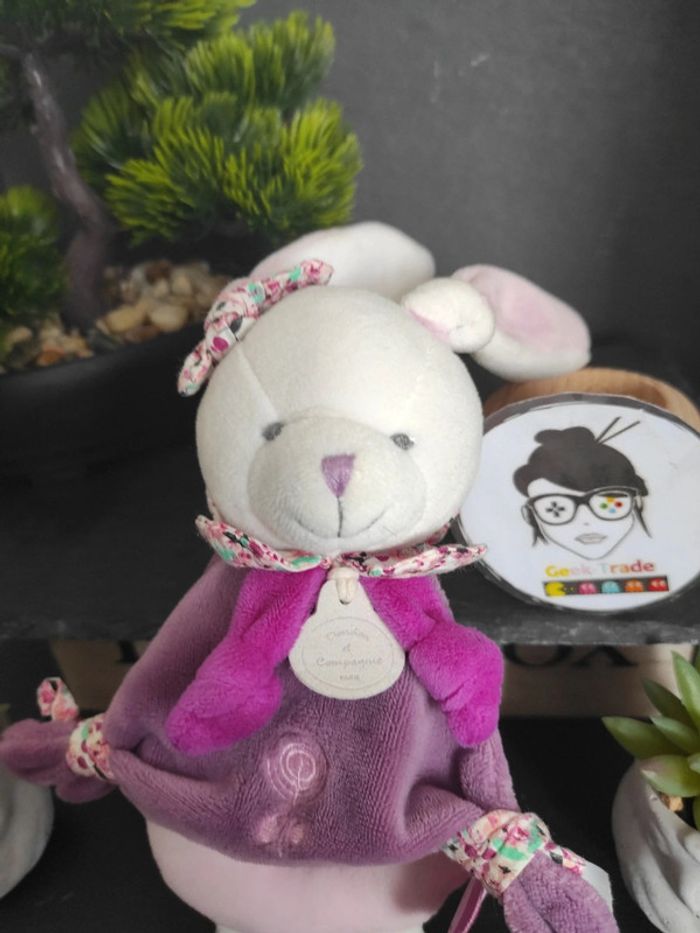 Hochet Lapin DC2700 Cerise doudou Et Compagnie plat mouchoir #geektradedoudou Cerise le lapin Hochet à grelot Rose , violet blanc Très bel état Bon etat Afin de ne pas abîmer les doudous et de laisser le choix dans l'utilisation de la lessive les peluches ne sont pas lavées avant envoi Description complément : Petit nettoyage à prévoir Vous achetez ce que vous voyez les photos font entièrement partie de la description Transport : Les frais de transport comprennent les frais du transporteur ainsi que l'emballage pour protéger au mieux votre achat. Chaque achat est envoyé en format colis avec numéro de suivi Le poids du colis est de 500g finit (je ne peux pas faire moins) il peut donc y avoir plusieurs objets dans le carton si vous le souhaitez (contactez moi afinde grouper les frais de port) Référencement : #geektradedoudou #peluche #plush  #doudou #enfant #bebe