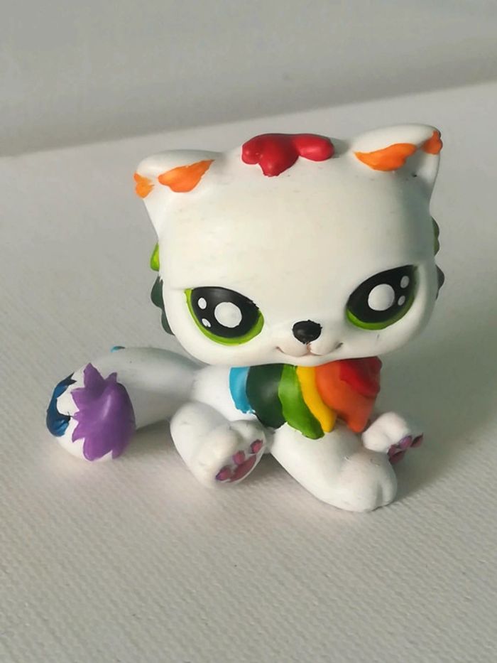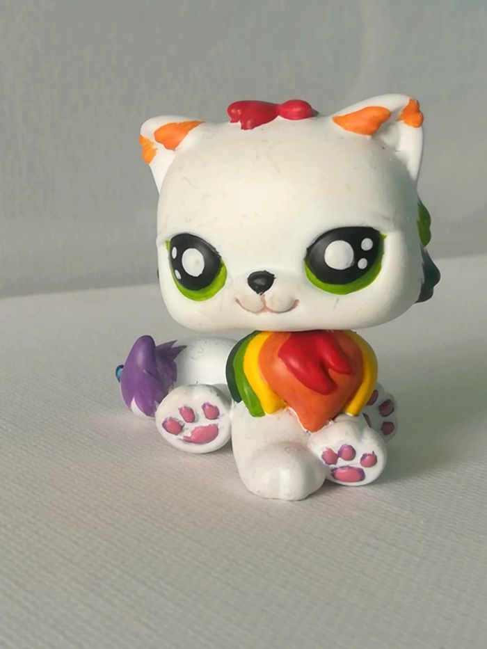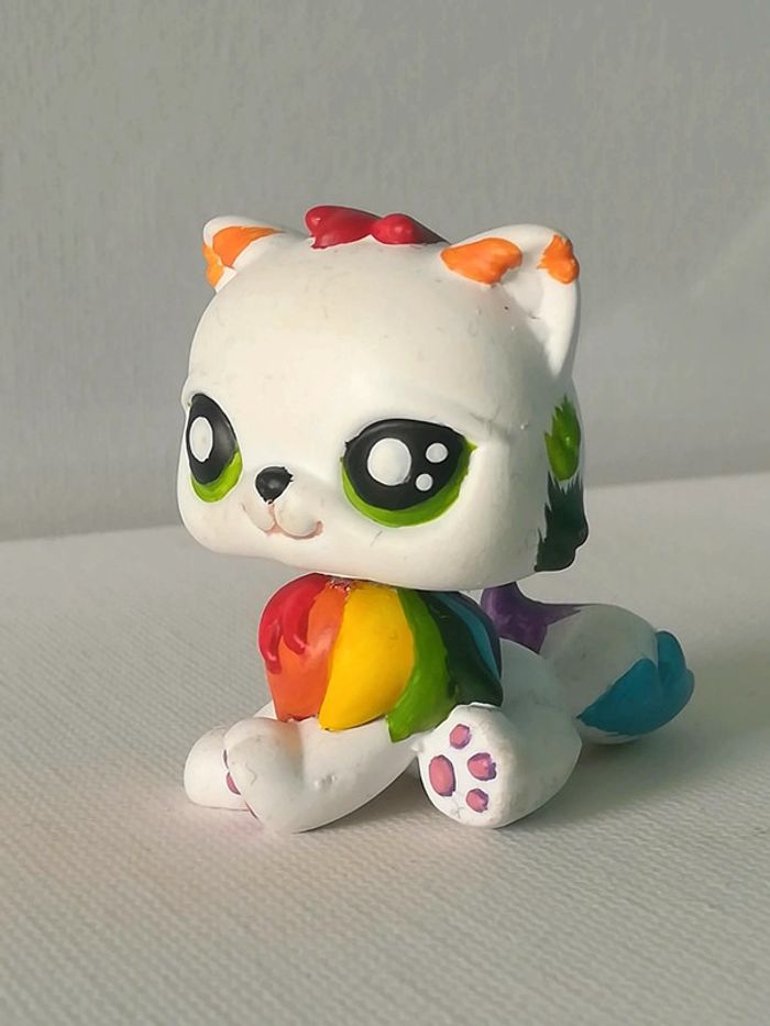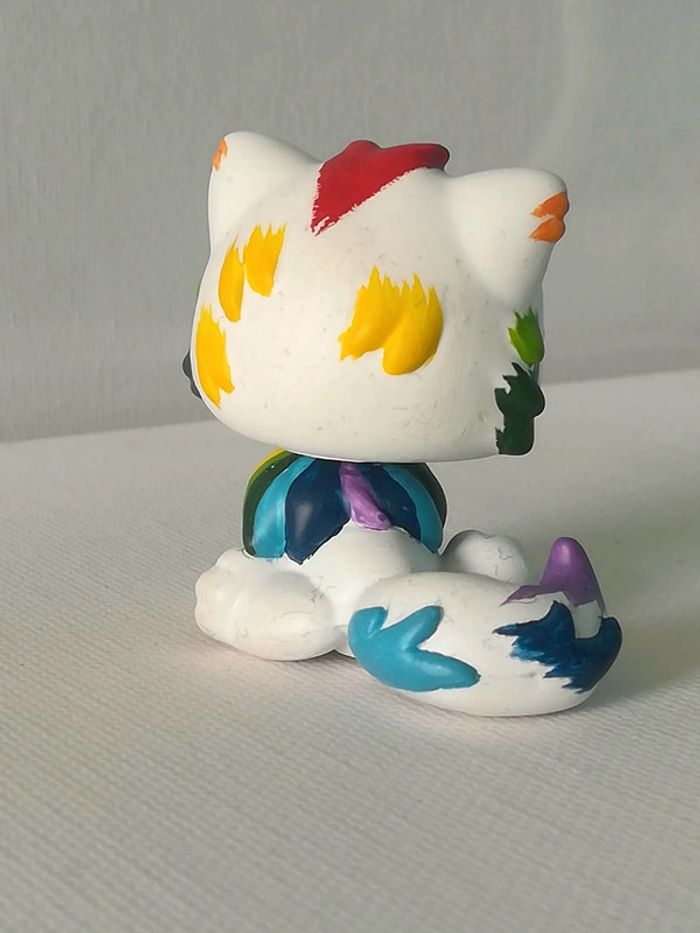 Littlest PetShop OOAK Rainbow Cat Chat Unique custom handmade LPS handpainted - photo numéro 1