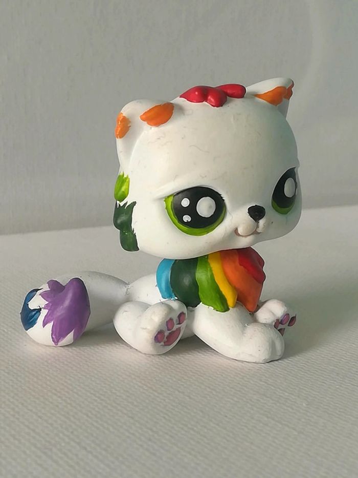 Littlest PetShop OOAK Rainbow Cat Chat Unique custom handmade LPS handpainted