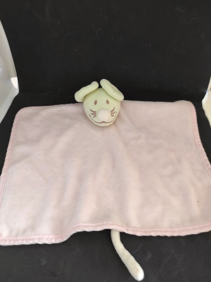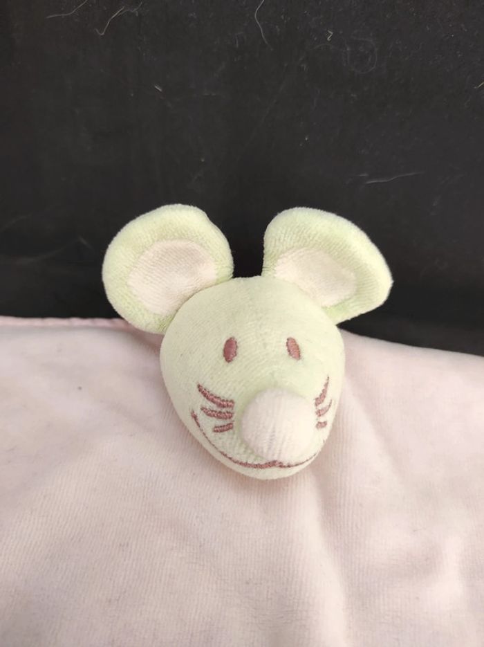 Souris Verte Rose Mouse Green Pink doudou plat mouchoir  #geektradedoudou - photo numéro 1