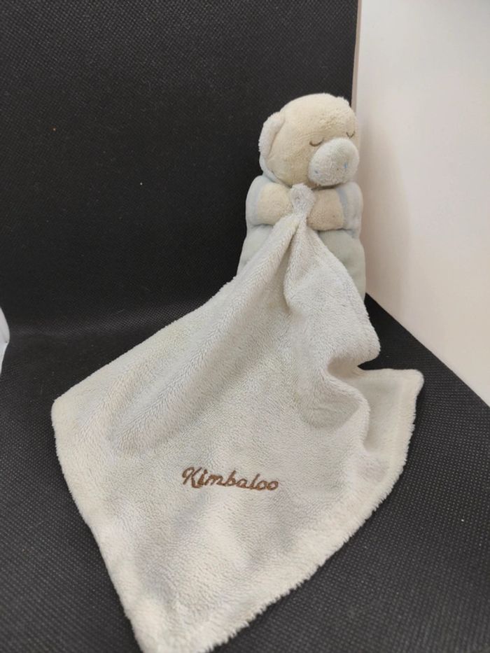 Ours blanc bleu kimbaloo doudou plat mouchoir  #geektradedoudou - photo numéro 1