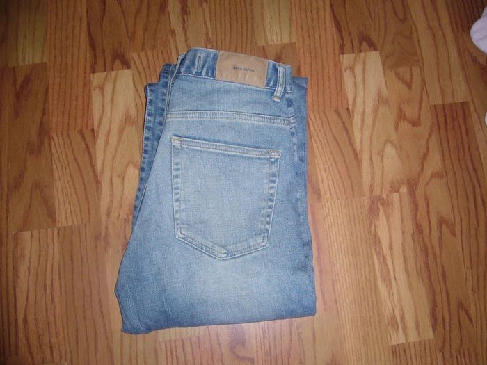 Jean Zara Regular boot cut, Button fly taille US 31 soit 40 En très bon état, il a juste le bas d'une jambe qui a un peu frotté sinon le reste nickel. Composition 99% coton 1% spandex Largeur ceinture 38,5cm Largeur entrejambe 59cm Longueur 113cm Largeur cheville 24cm Prix ferme merci
