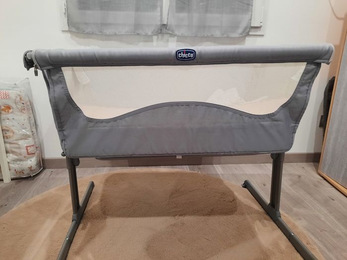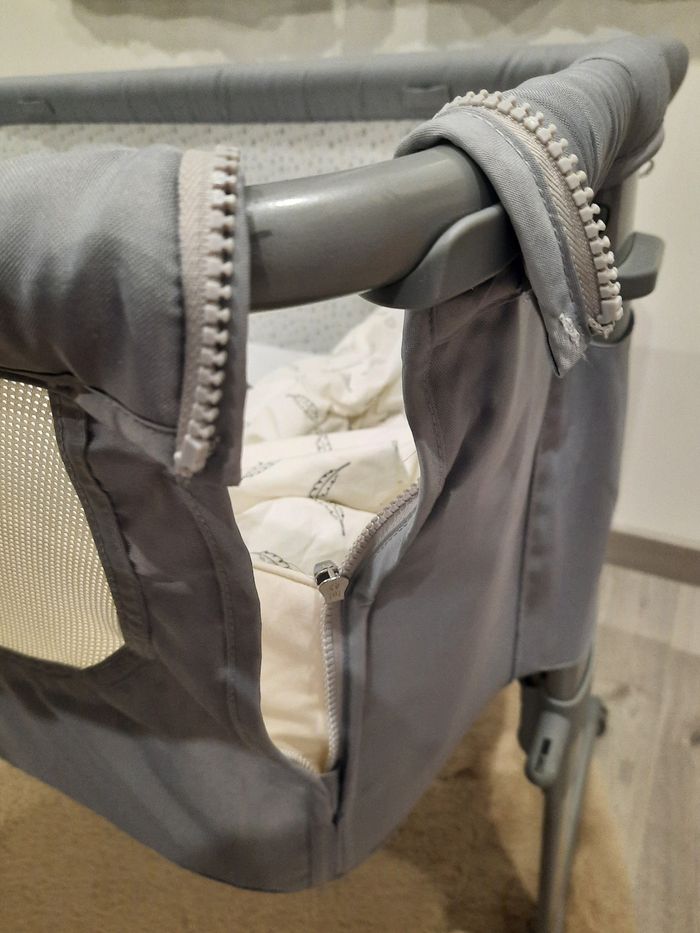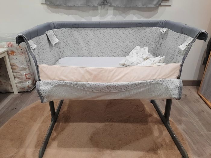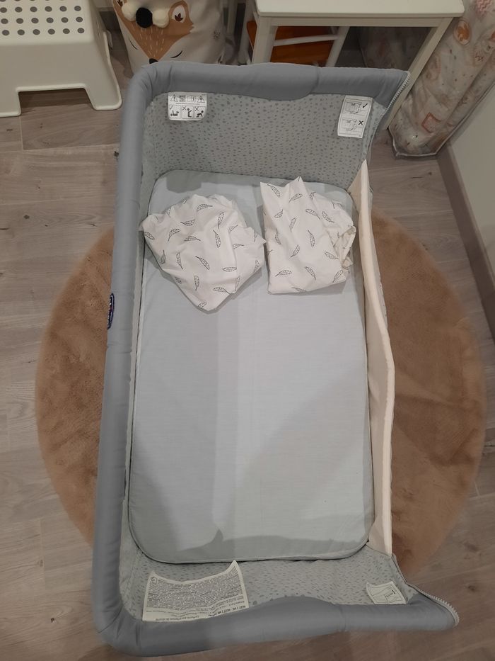Cododo Chicco next to me 2 gris claire Vendu dans son carton d'origine Avec 2 drap housses Très bon état pour l'utilisation en cododo simple ⚠️⚠️ les fermetures éclaires pour utilisé le cododo en mode berceau sont cassés voir photos