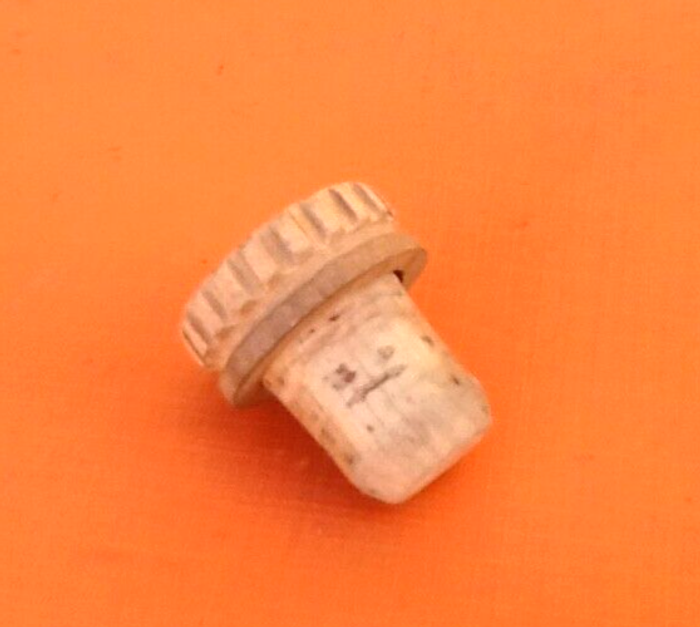 Années 1940 Bouteille / Gourde de Pèlerinage Osier naturel tressé Verre ambré Bouchon bois et liège Hauteur : 230mm Longueur : 135mm Largeur : 90mm Poids : 800grs