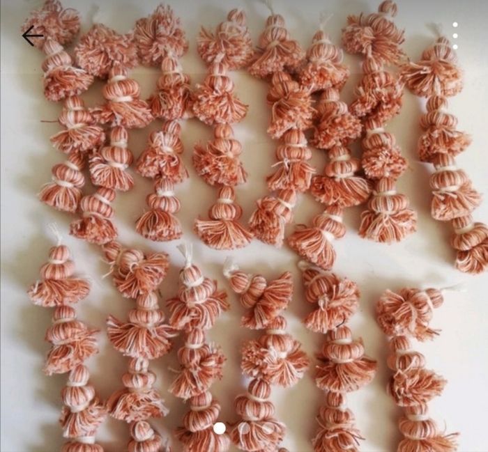 Lot de 14 pompons long saumon et marron clair pour loisirs créatifs. 7euros le lot.