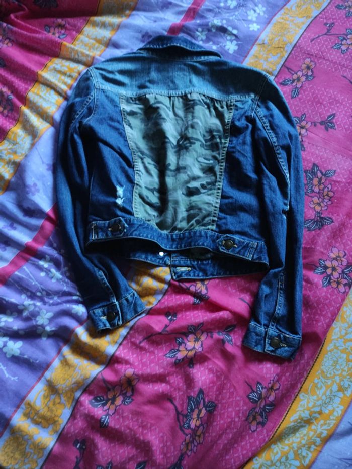 Veste en jean Pimkie. Taille 38. Jean et tissu camouflage. En bon état. Effet usé. #crisgaet83_vetementsfemmetaillem