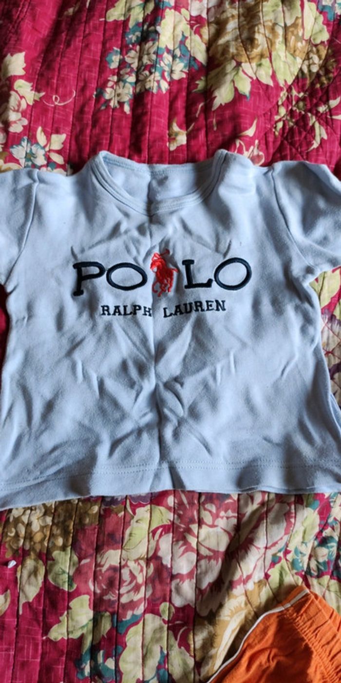 Lot 5 vêtements 2 ans. État satisfaisant à bon. Tâche sur le tee shirt gris visible sur photo. Tee shirt Ralph Lauren détendu et faux. #crisgaet83_vetementsgarcon2ans