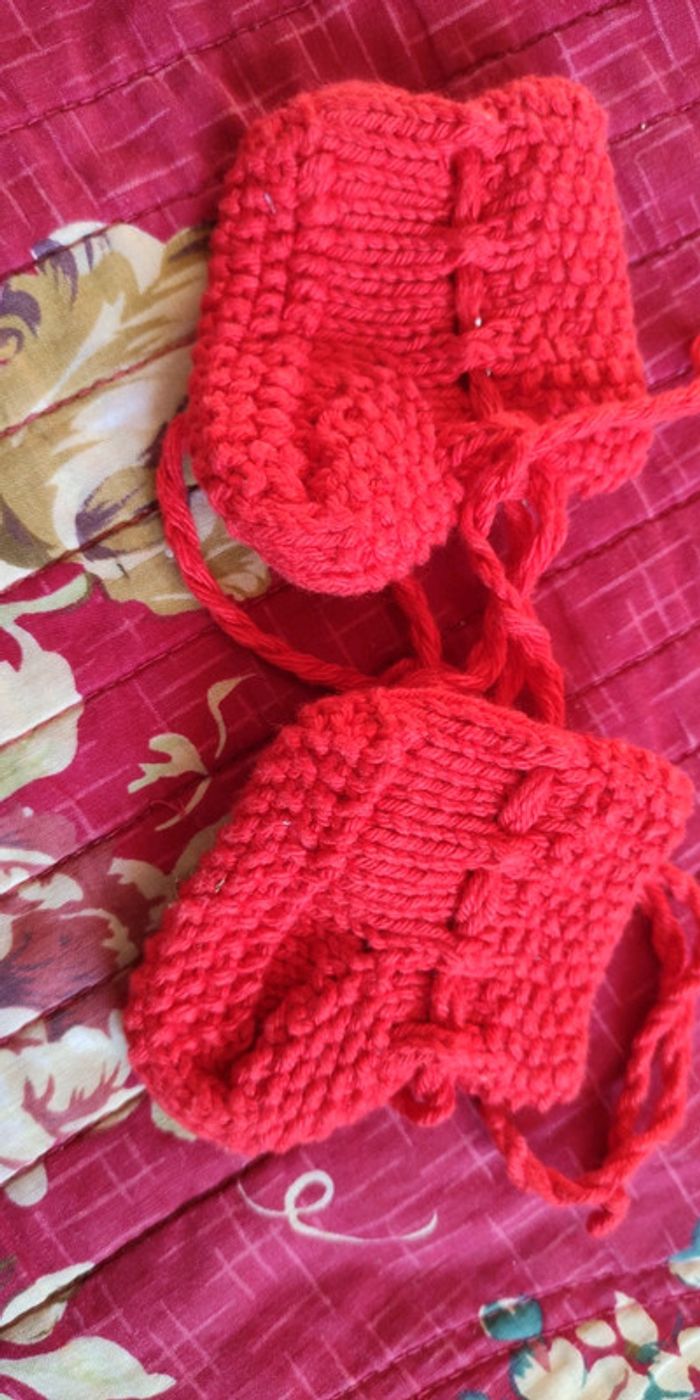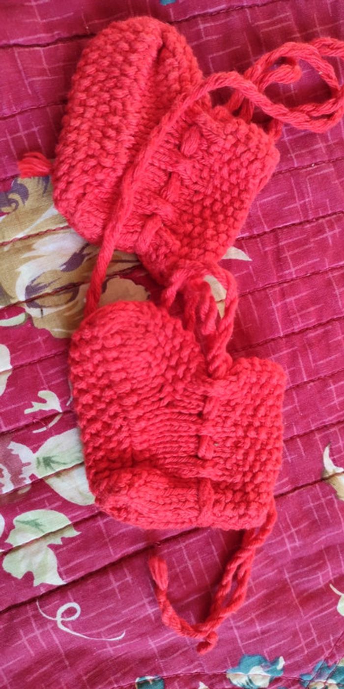 Paire chaussons naissance. Rouge. Bon état #crisgaet83_vetementsgarconnaissance