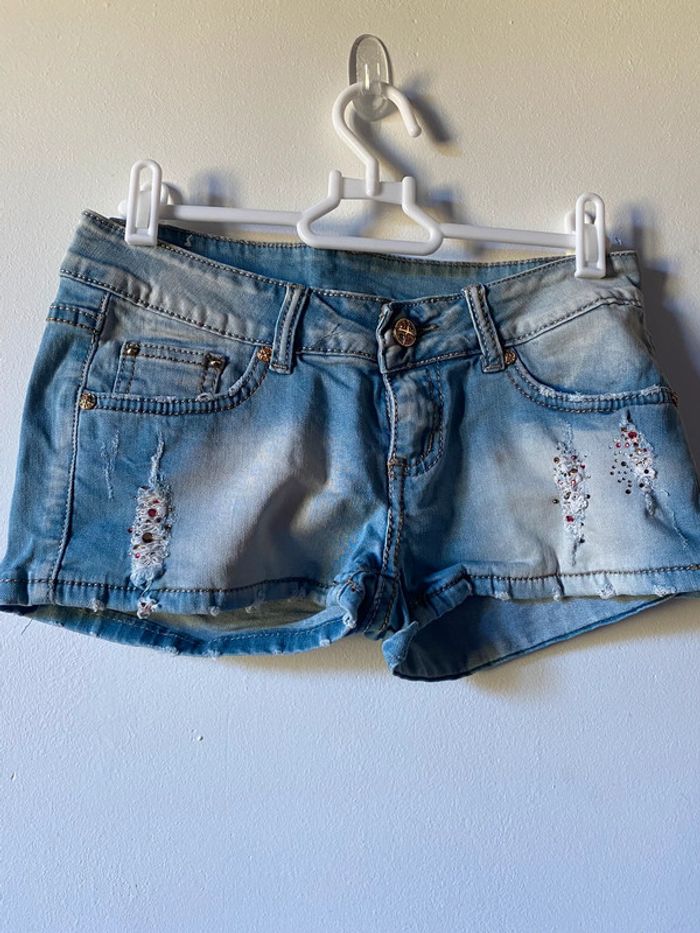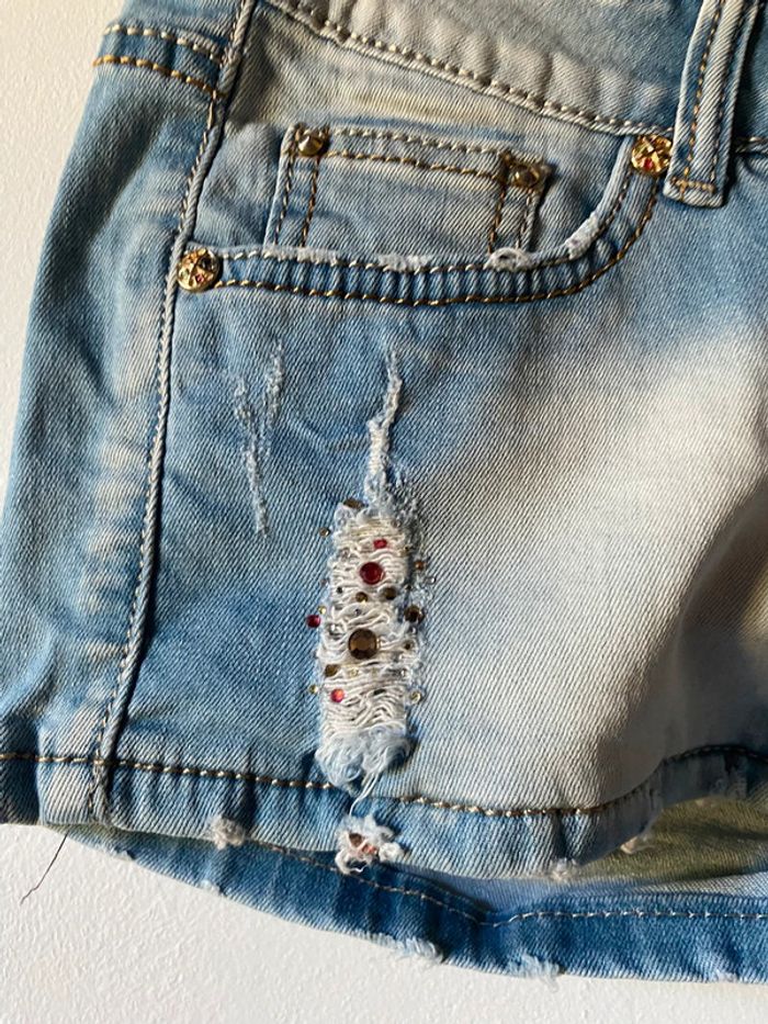 Short, jean bleu court Taille S Strass et effet déchiré #ibiza64140femmes #ibiza64140femmeshortss