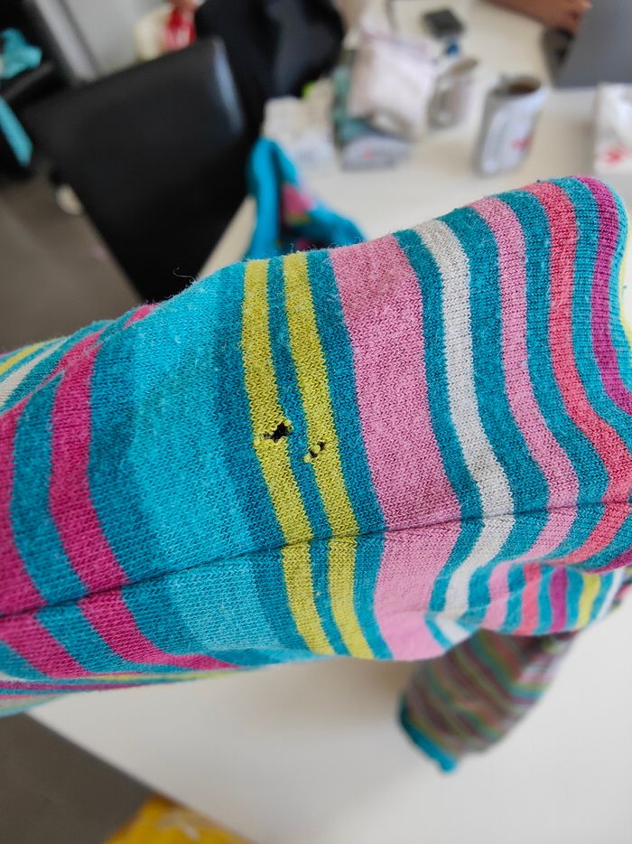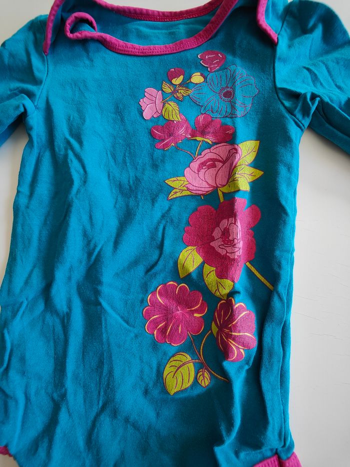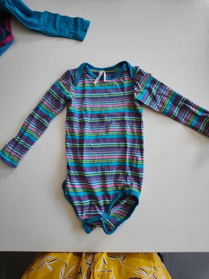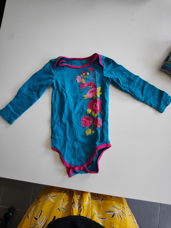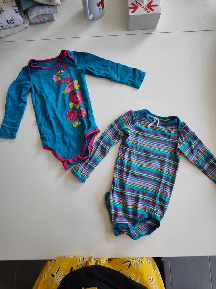 Lot de 2 bodies manches longues, le rayé est troué au niveau de la manche