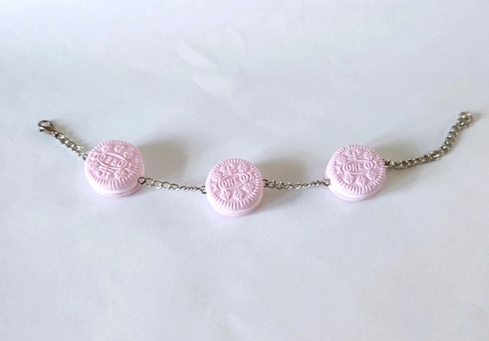 Bracelet biscuits oréo roses réalisé en pâte fimo. #patefimo #bijouxfimo #fimo #bijouxgourmands