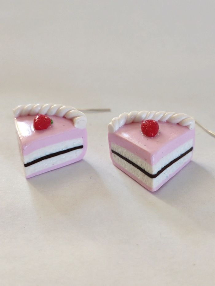 Boucles d'oreilles en pâte fimo, parts de gâteau aux fraises, réalisées à la main, neuves. #fimo #bijoux #bijouxfantaisies #bijouxfimo