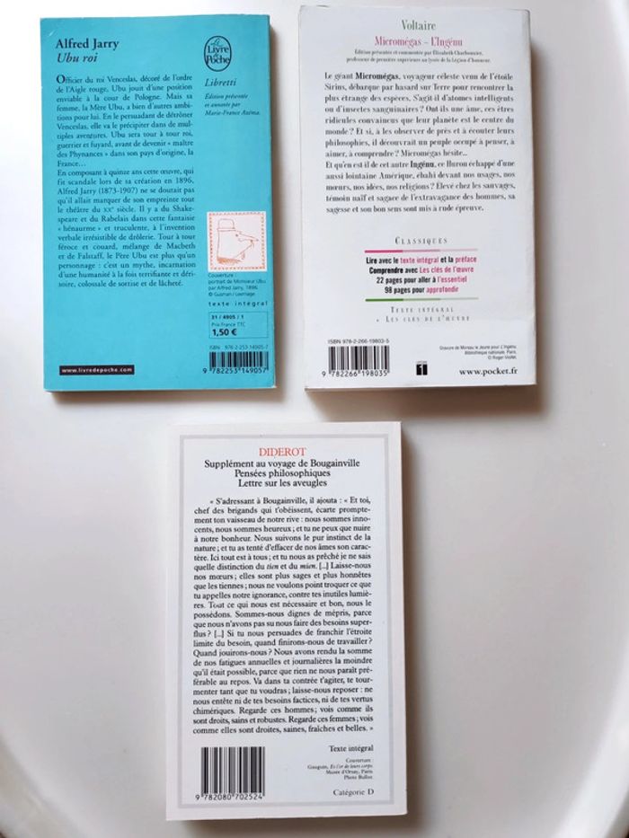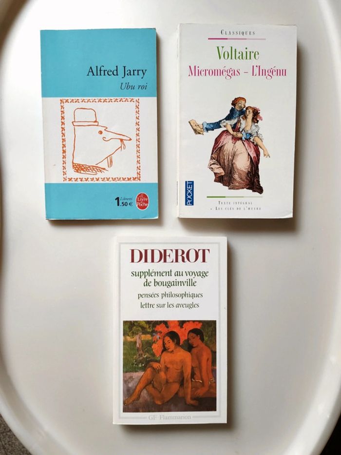 3 livres Ubu roi d'Alfred Jarry, micromegas L'ingenu de Voltaire, supplément au voyage de Bougainville de Diderot #livres #livre #livredepoche #litteratureclassique #littérature #diderot #voltaire #uburoi #alfredjarry #alinel5403loisir_livre