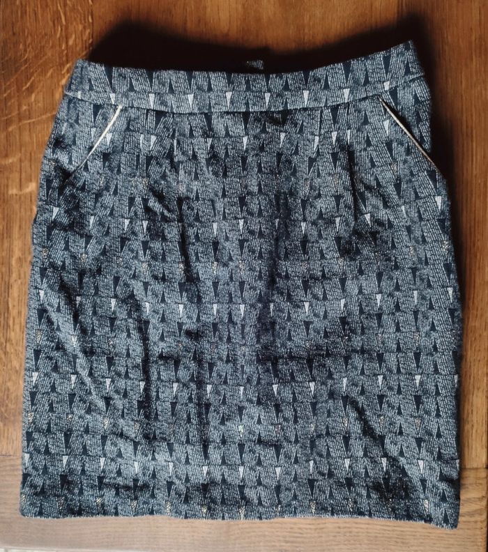 Jupe à motifs noirs et doré camaïeu taille 34 - photo numéro 1