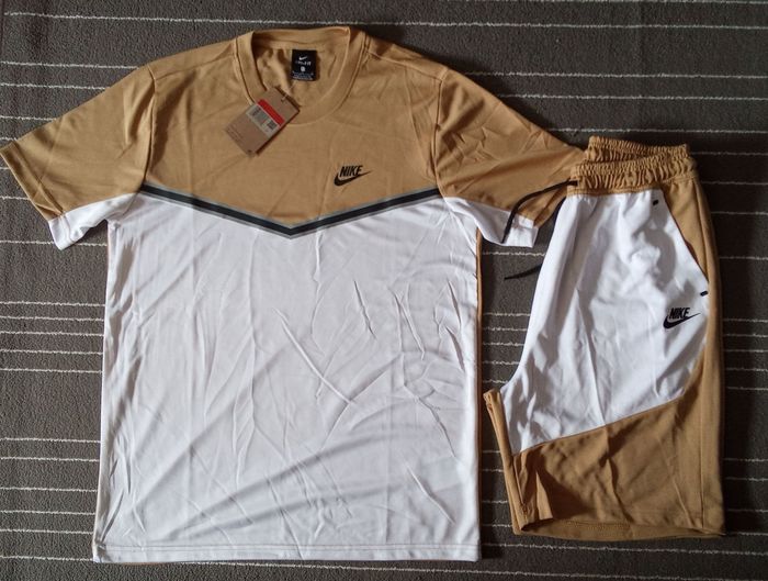 Une ensemble Nike Tech short t-shirt Beige et Blanc neuf avec étiquette dispo en taille S/M
