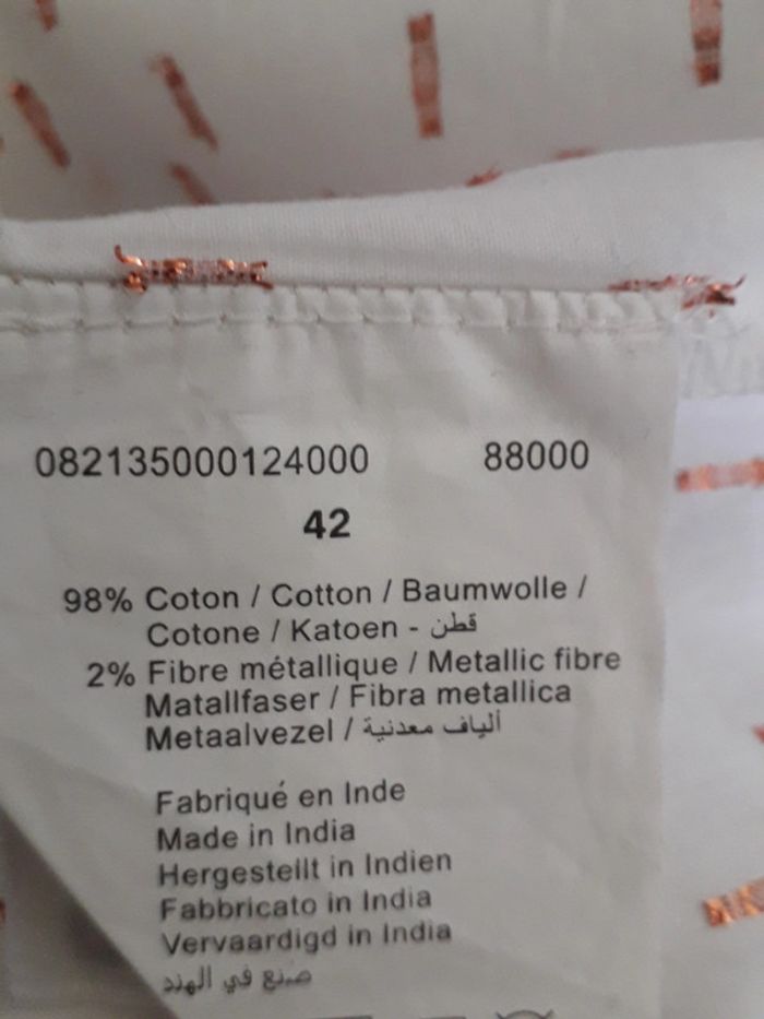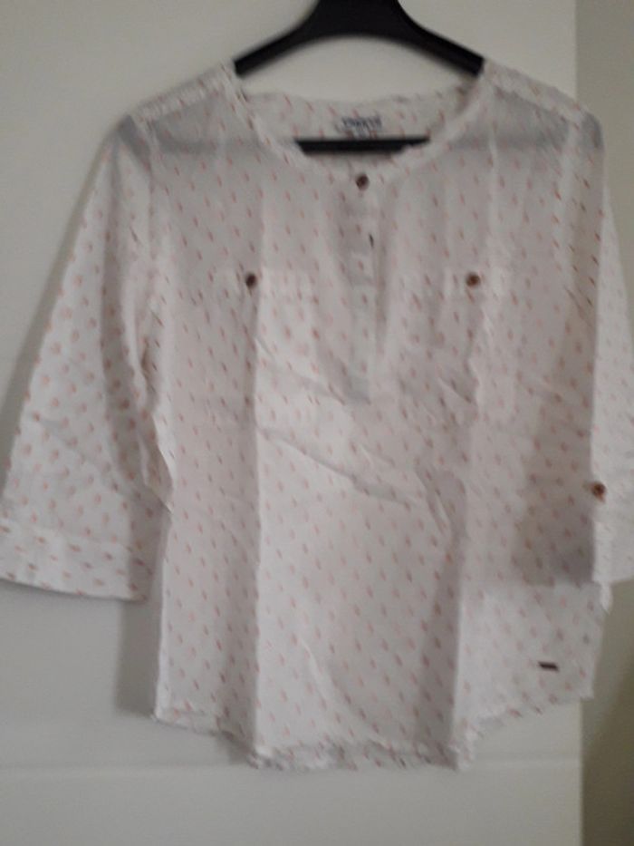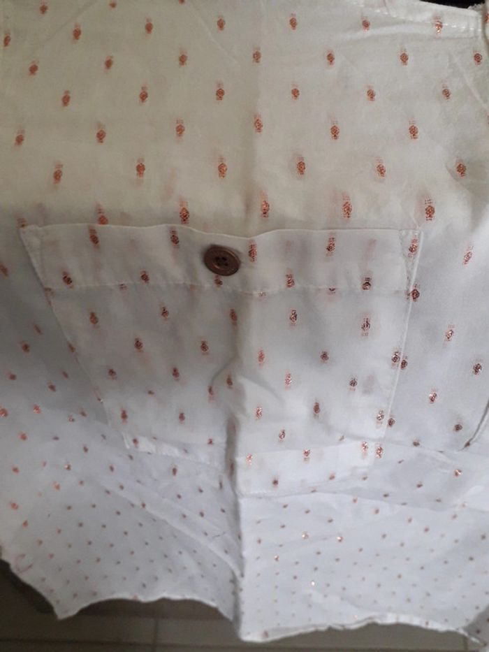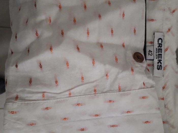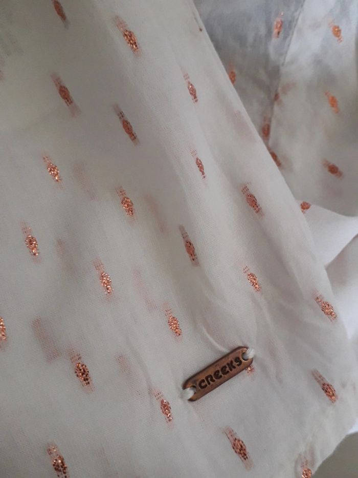 chemise creeks comme neuve, portée une fois mais trop grande pour moi très jolie avec des "plumetis" métallisés de couleur gold