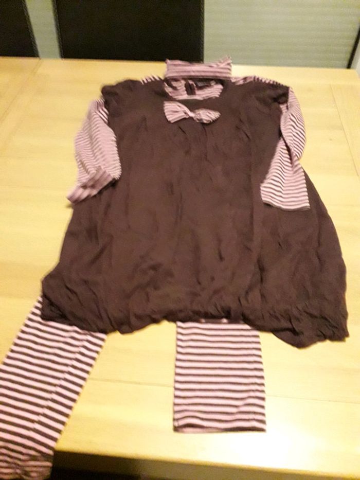Je vends un ensemble de la marque Sergent major composé -d'une robe (légèrement boule) manches courtes très bon état -d'un tshirt manches longues très bon état -d'un legging (en bon état -accro réparé au genou) porté quelques fois
