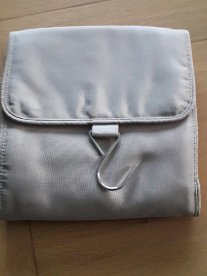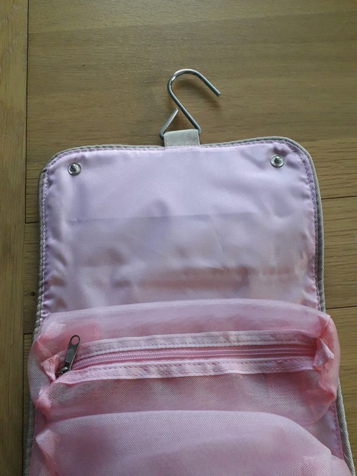 trousse de toilette neuve sans marque, avec compartiments et crochet pour la suspendre quand elle est ouverte. neuve sans emballage