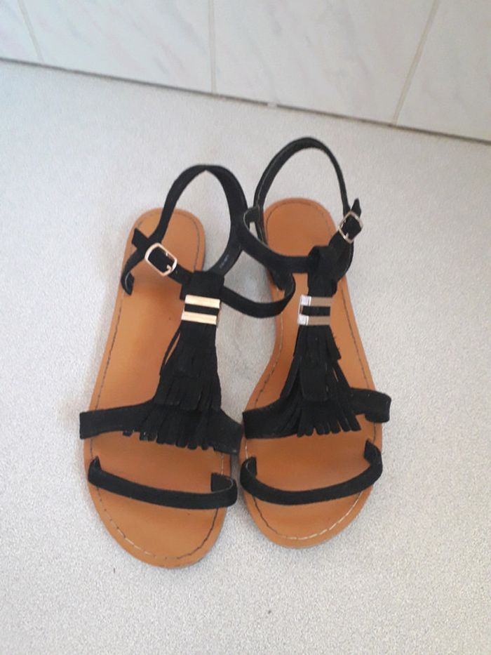 nu-pieds en daim de couleur noire porté quelques fois taille 37