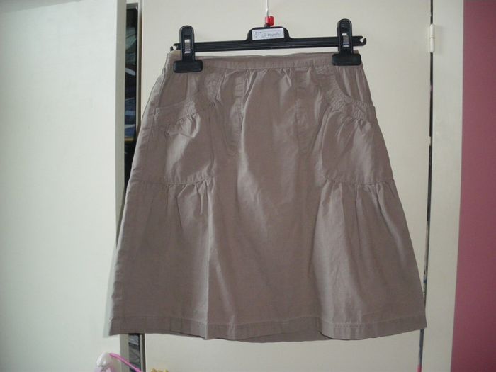 Je vends une jupe de la marque Petit Bateau De couleur beige, elle est en tissu léger, 2 poches Taille réglable Excellent état