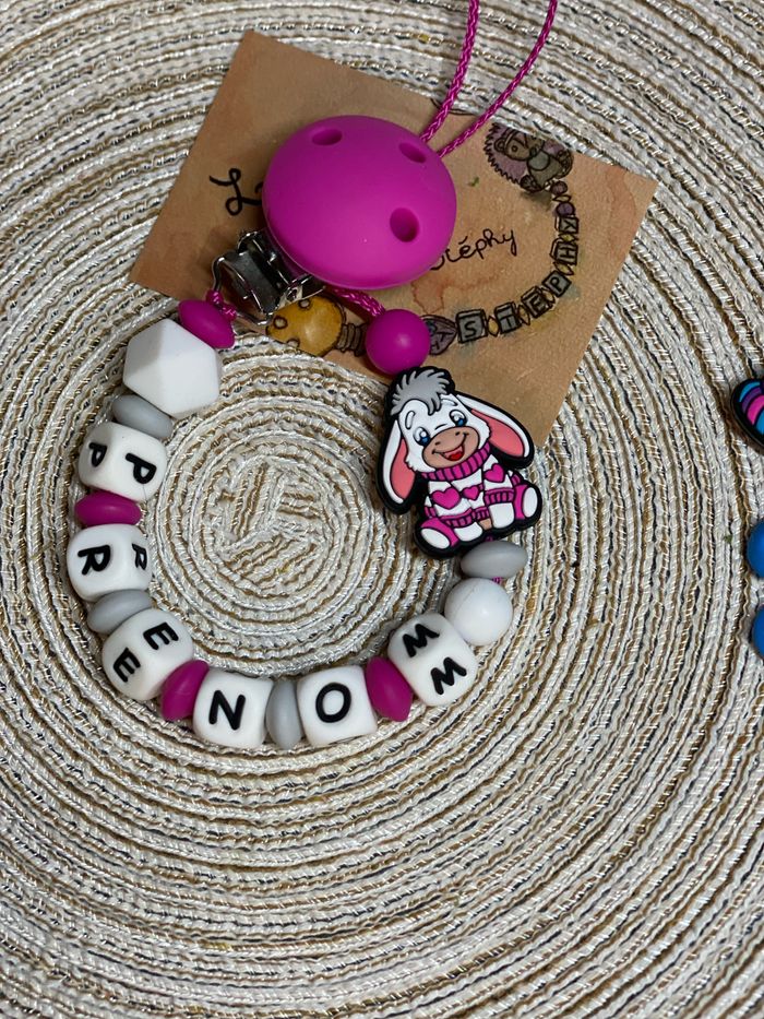 Pour passer commande il suffit de valider le paiement sur l’annonce du modèle désiré et de m’envoyez le prénom de l’enfant par message que je puisse réaliser votre commande A partir de 2 articles vous bénéficiez de 5% de réduction 🥰 Réalisation dans la journée et envoie dès le lendemain ( mardi , jeudi et samedi ) Attention l’adaptateur de tétine mam et en supplément à 1€ Une petite photo du modèle terminé et toujours envoyez que vous puissiez vérifier ☺️