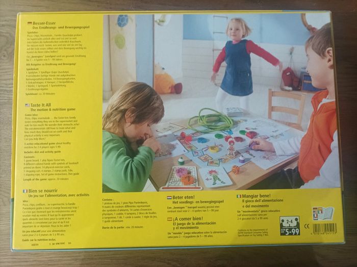 Jeu de société de 5 à 99 ans pour 4 joueurs. Description sur la photo 2. Jeu de plateau et de mouvement. Complet, il faudrait juste recharger 3 des tampons.