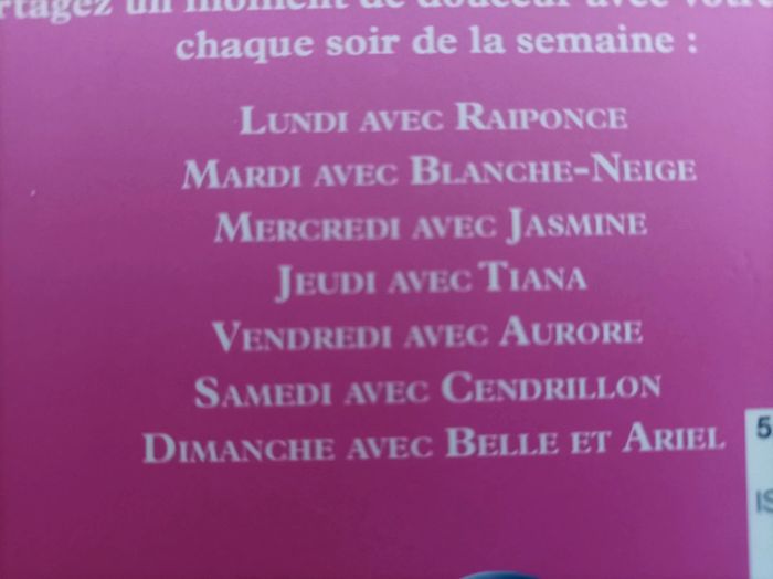 Une histoire de princesse Disney chaque soir. Voir les 7 titres sur la photo.