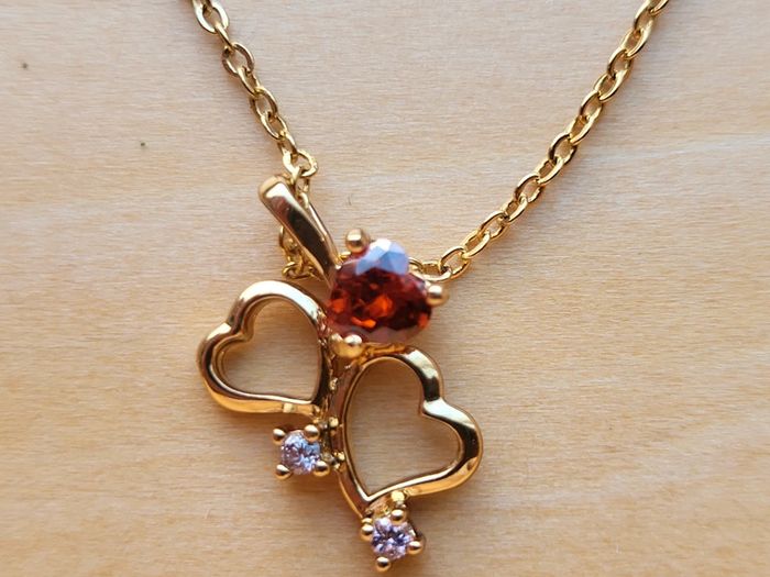 Neuf dans son emballage pierre rouge et rose . Avec boîte cadeau #13aure13bijoux #collierpendentifcoeur
