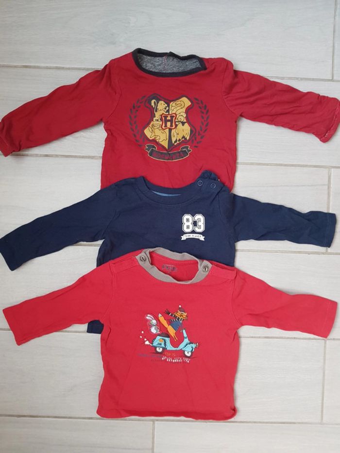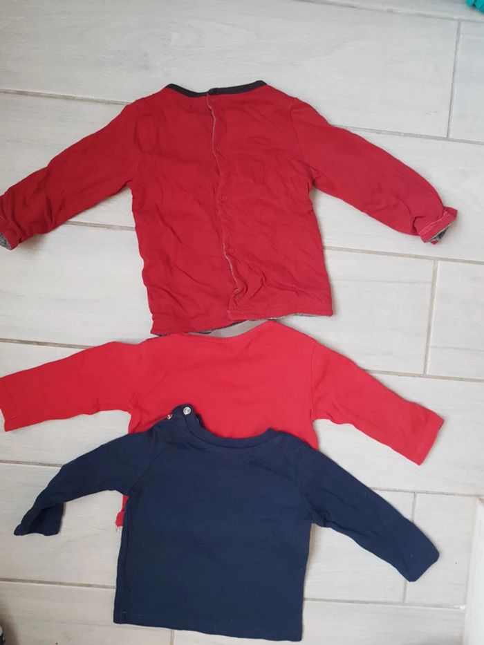 En excellent état. Le 1er en haut est réversible . #lottshirtsmancheslonguesgarcon6mois #13aure13garcon6mois