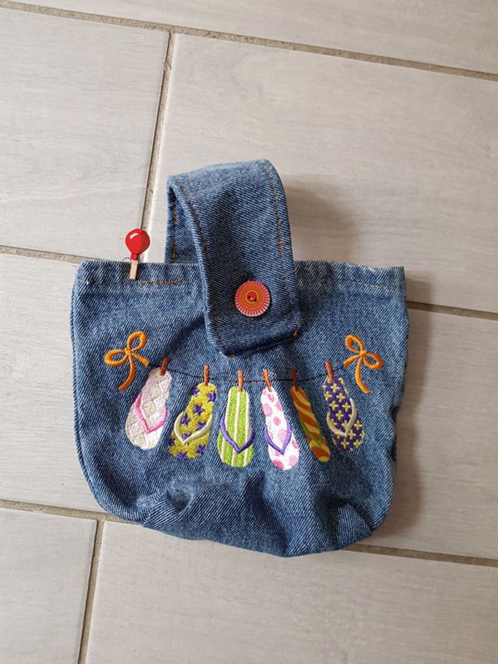 Petit sac en jean motif tongs  épingle décorative - photo numéro 1