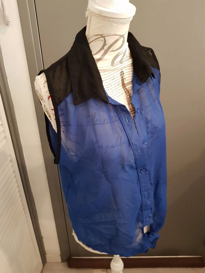 Magnifique haut bleu electrique et noir taille s - photo numéro 2