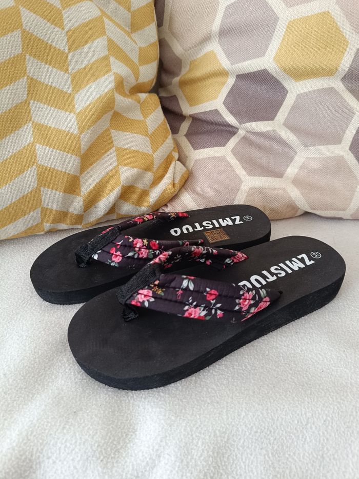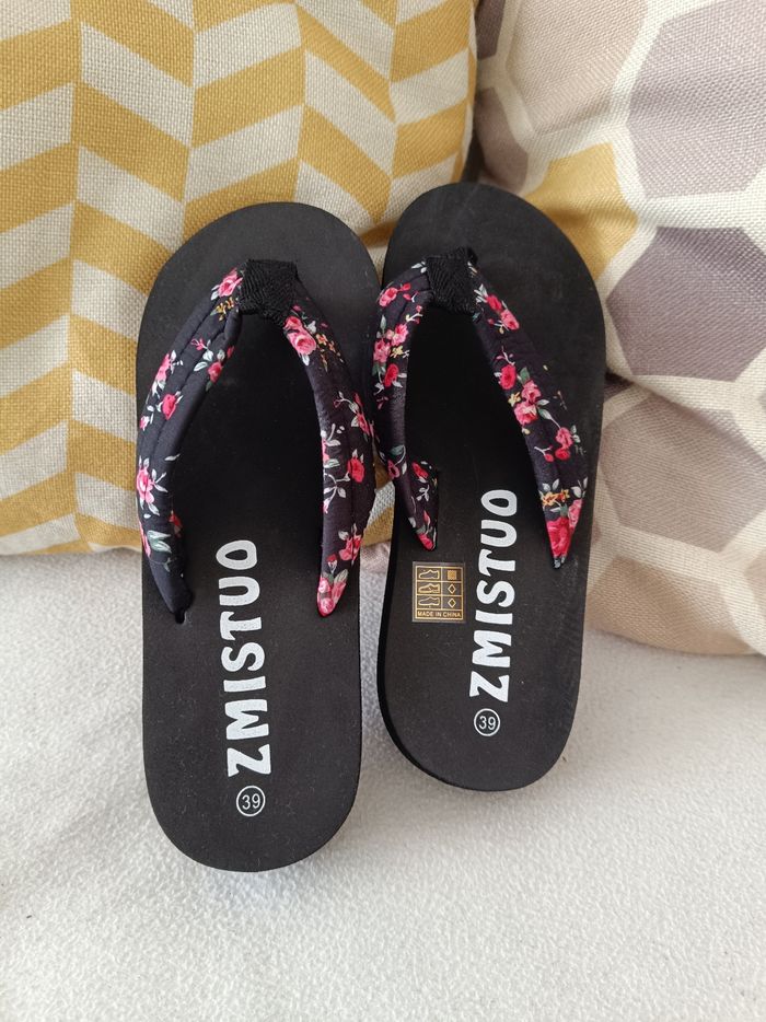 Tong femme avec une semelle épaisse. Motifs fleuris en pointure 39.