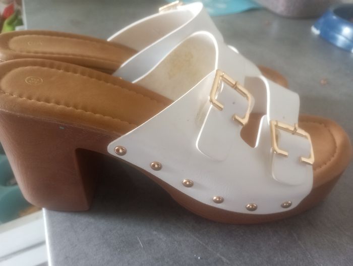 Sabot tous Legé taille 38 talon compensé avec 2 brides qui peu se réglé a votre pied et clouté