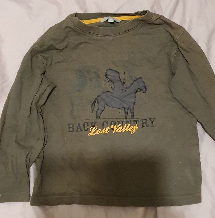Tee-shirt vert, Tex. Manches longues. Taille 4/5ans
