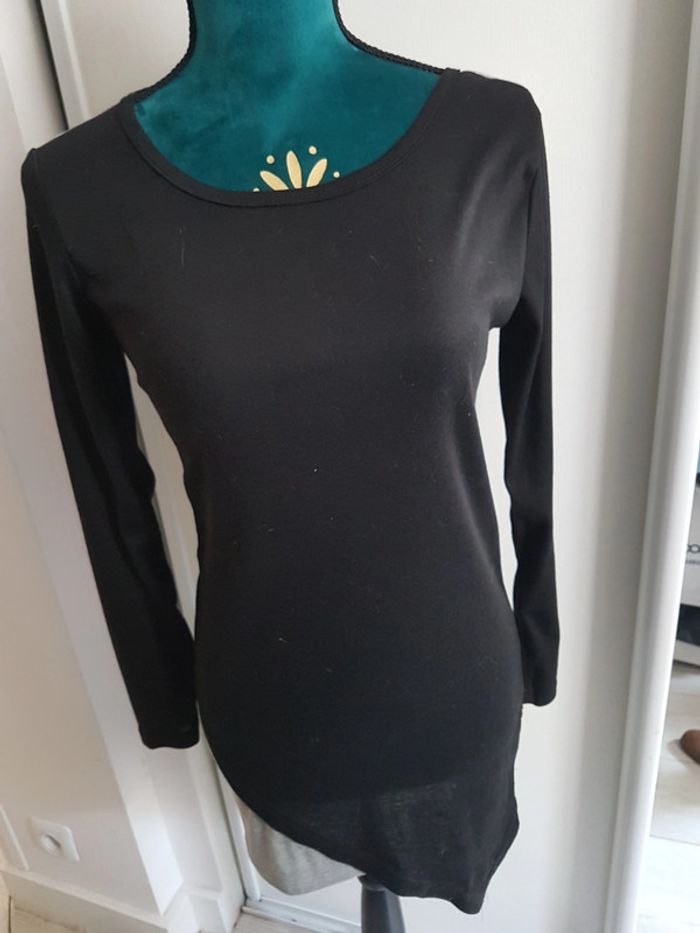 Tee shirt long Ou alors le porter comme tunique avec un legging. Noir devant et gris derrière