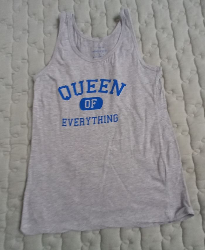 Col arrondi, sans manches, coloris bleu avec inscriptions imprimées, Composition 95% coton 5% viscose largeur épaules 26 cm , aisselles 37 cm, longueur épaules-bas 58 cm et aisselles-bas 39 cm, Taille EUR 32 / IT 36 Possibilité d offre en lots. Envoi rapide et soigné