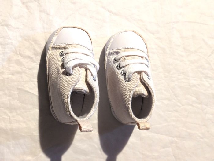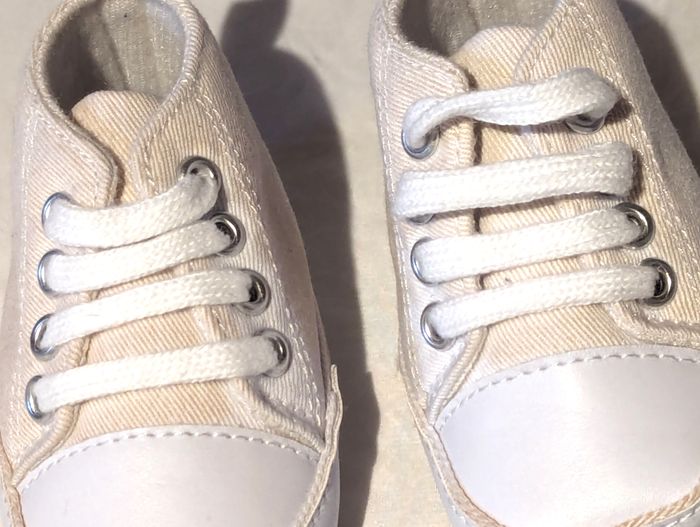 Petites Chaussures Crèmes Blanches Fermeture Lacets Blancs Accessoire Petits Enfants Bébés - photo numéro 1