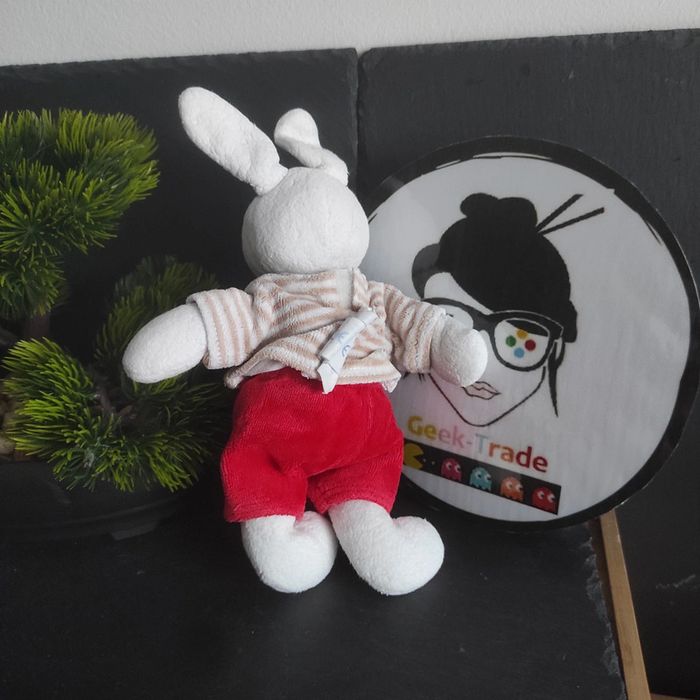 doudou Peluche obaibi Okaibi Lapin Blanc Short Rouge Rayé  Beige #geektradedoudo - photo numéro 1