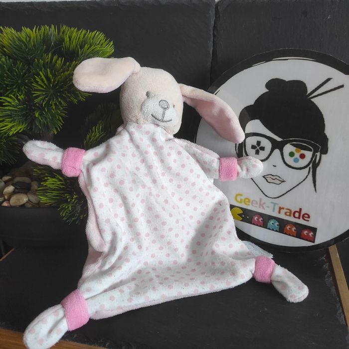 doudou lapin mes petits cailloux rose blanc pois Rond Beige  #geektradedoudou
