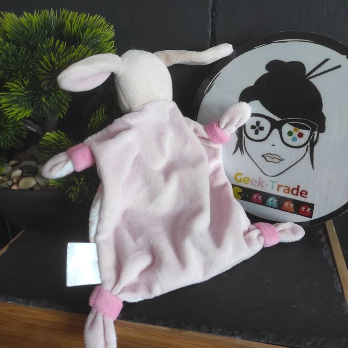 doudou lapin mes petits cailloux rose blanc pois Rond Beige  #geektradedoudou - photo numéro 2