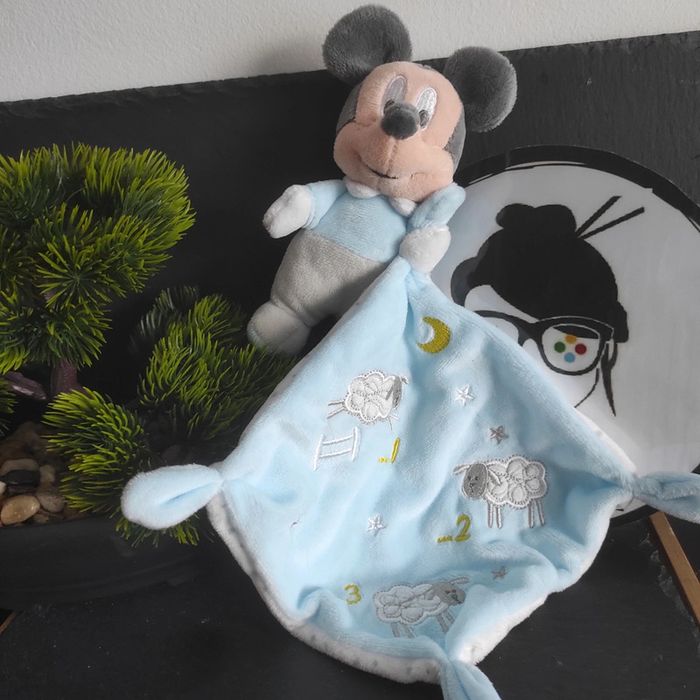 Doudou mouchoir Mickey Mouse Disney Baby bleu nuage mouton Gris #geektradedoudou - photo numéro 1
