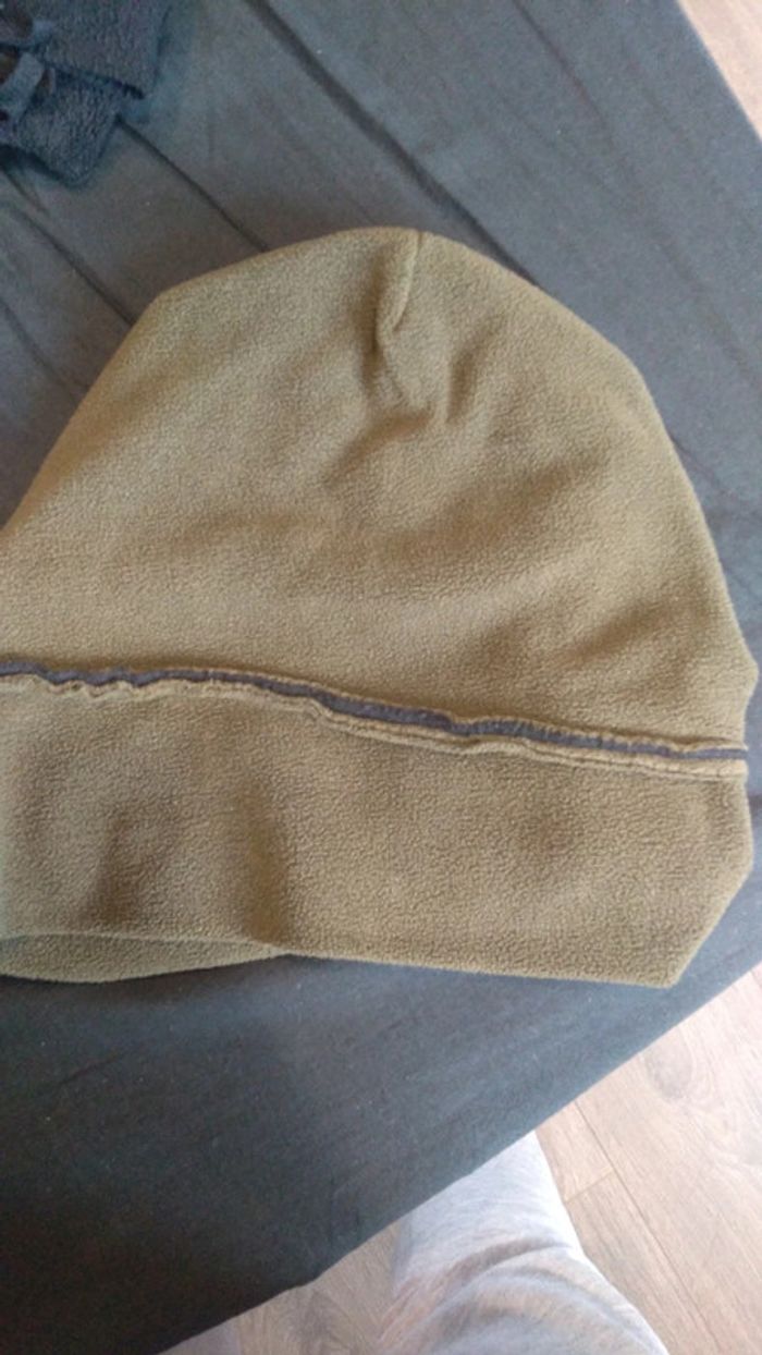 détaille du lot : bonnet bleu 4 euros bonnet kaki 4euros bonnet noir 4euros bonnet noir 3euros m mitaine marron 2euros total :17 euros
