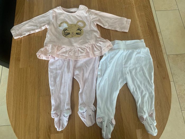 Ensemble pull + 2 pantalons Vertbaudet 3 mois - 60 cm en très bon état #loulou62200_3moisfille