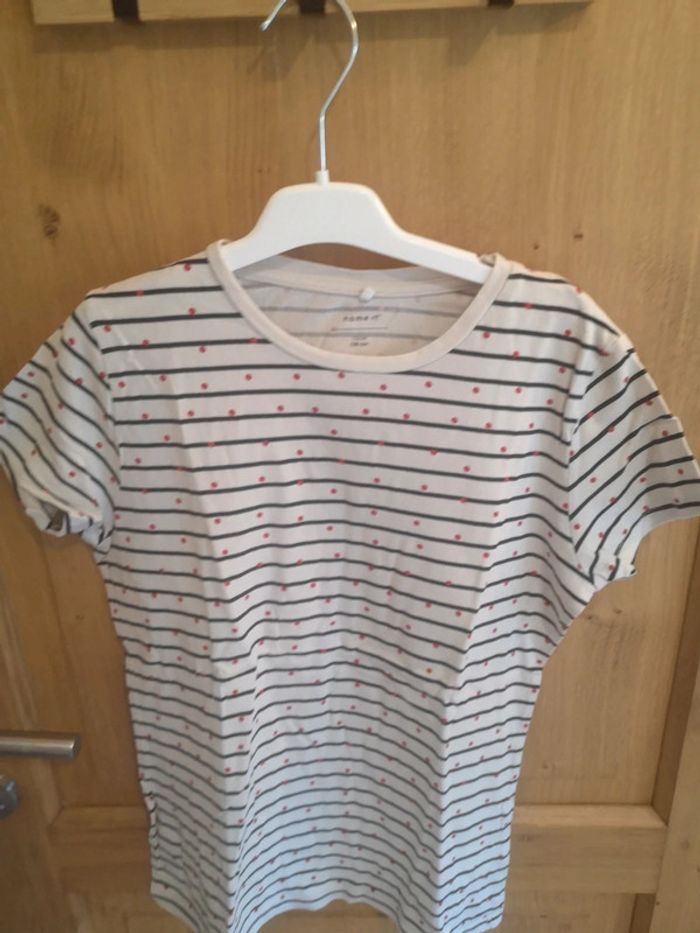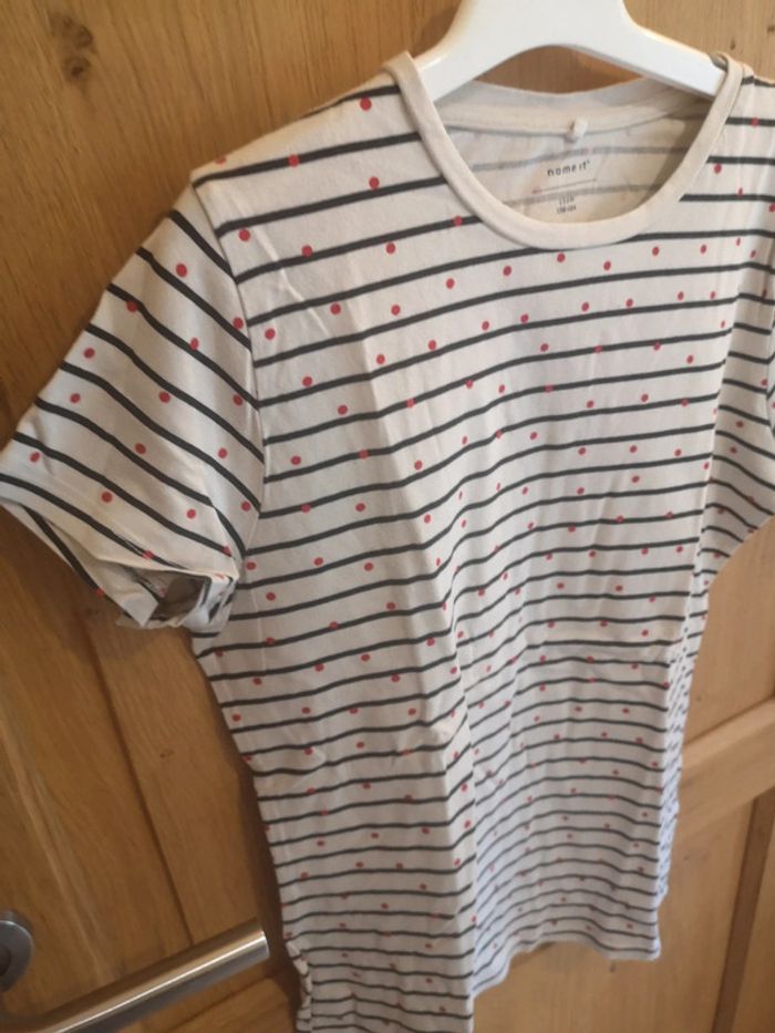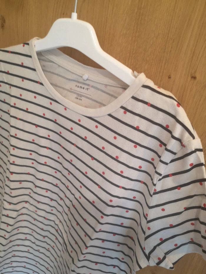 T-shirt Name It ligné blanc et noir à pois rouge 14 ans