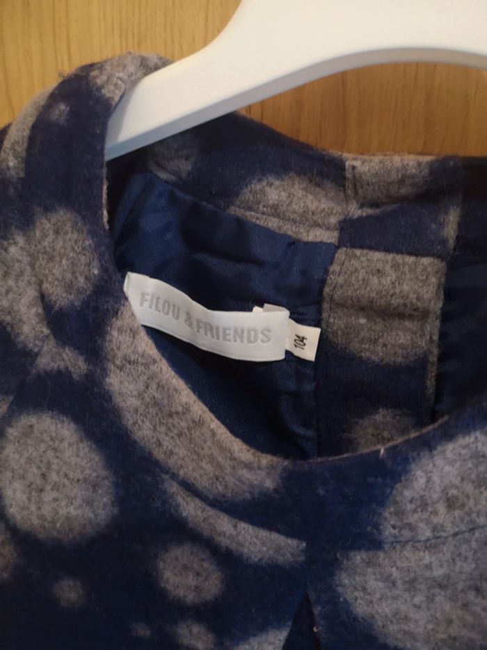 Robe chaude d'hiver doublée à courtes manches en bleu à pois gris Filou & Friends. Contient 72% de laine. Taille 4 ans #alexam_fille4ans #filouandfriends4ans #robefille4ans