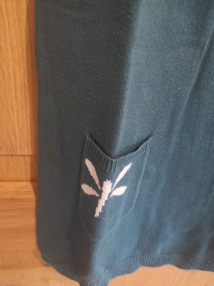 Robe d'hiver en maille en bleu Verbaudet avec deux poches à l'avant et motif libellule sur l'une des poches. Taille 6 ans #alexam_fille6ans #verbaudetfille6ans #robefille6ans