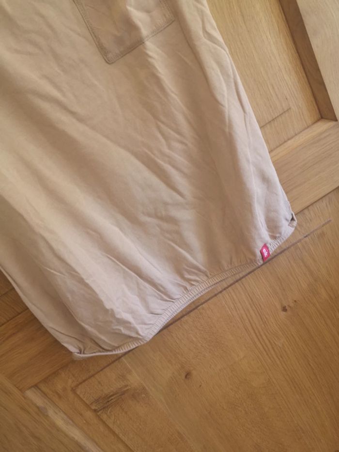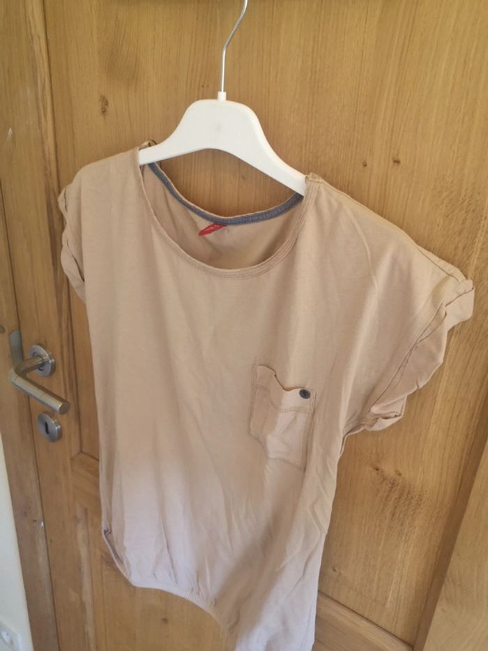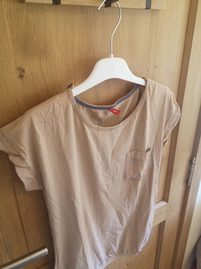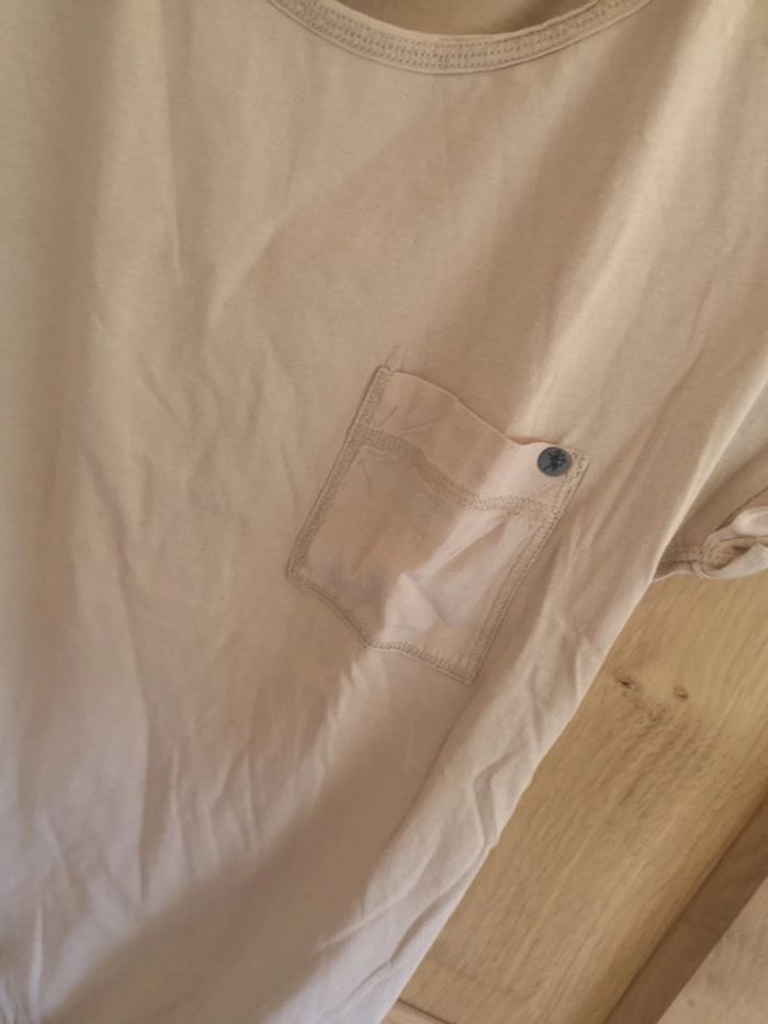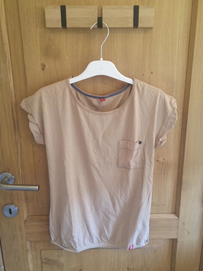 T-shirt à courtes manches Edc en beige avec petite poche près de la poitrine et resserré dans le bas. Taille Xs #alexam_femmexs #edcfemmexs #tshirtfemmexs