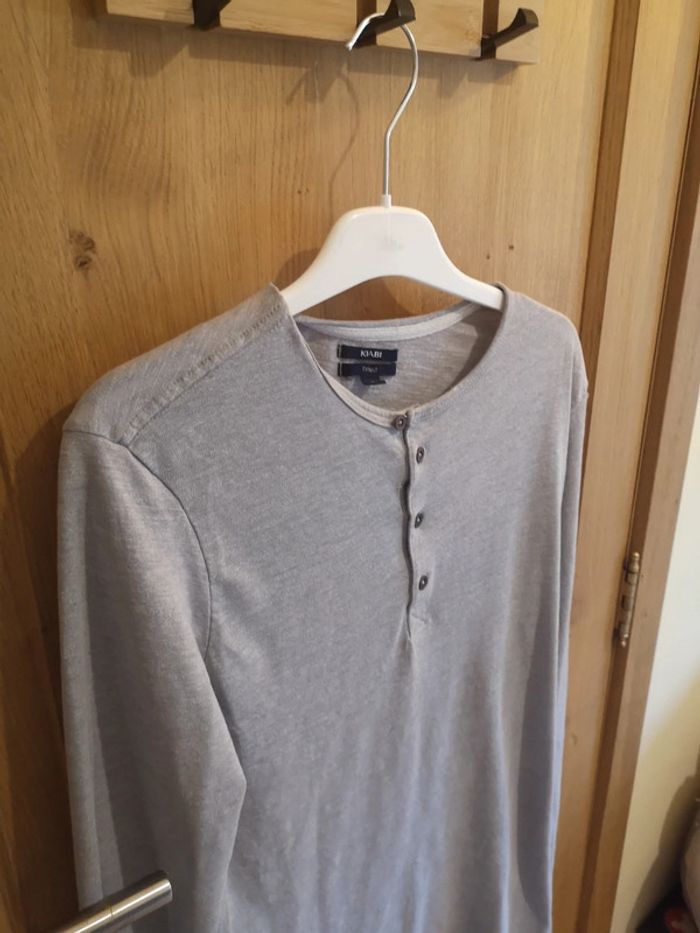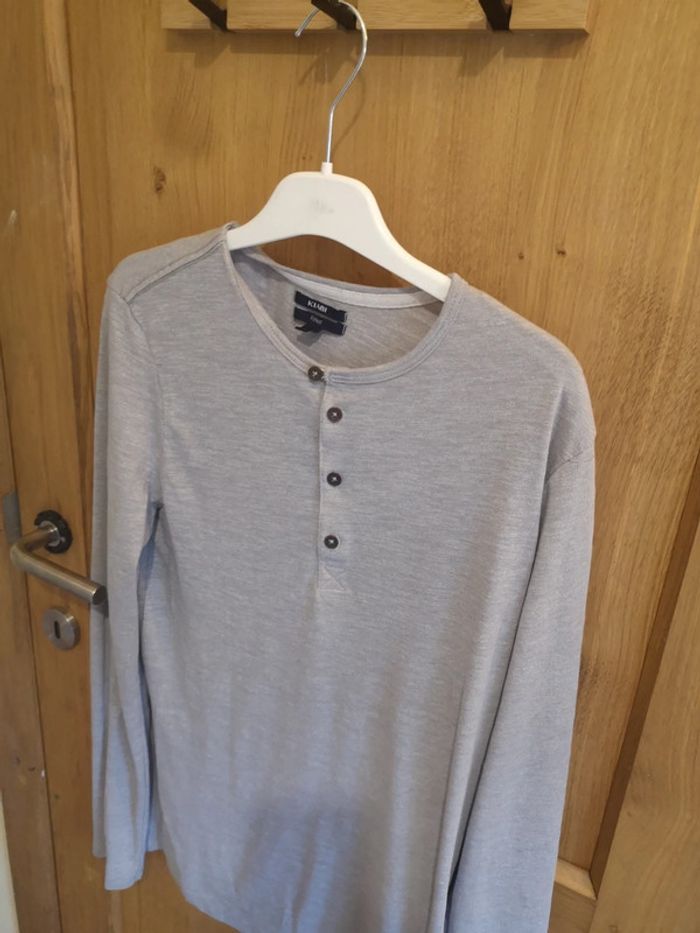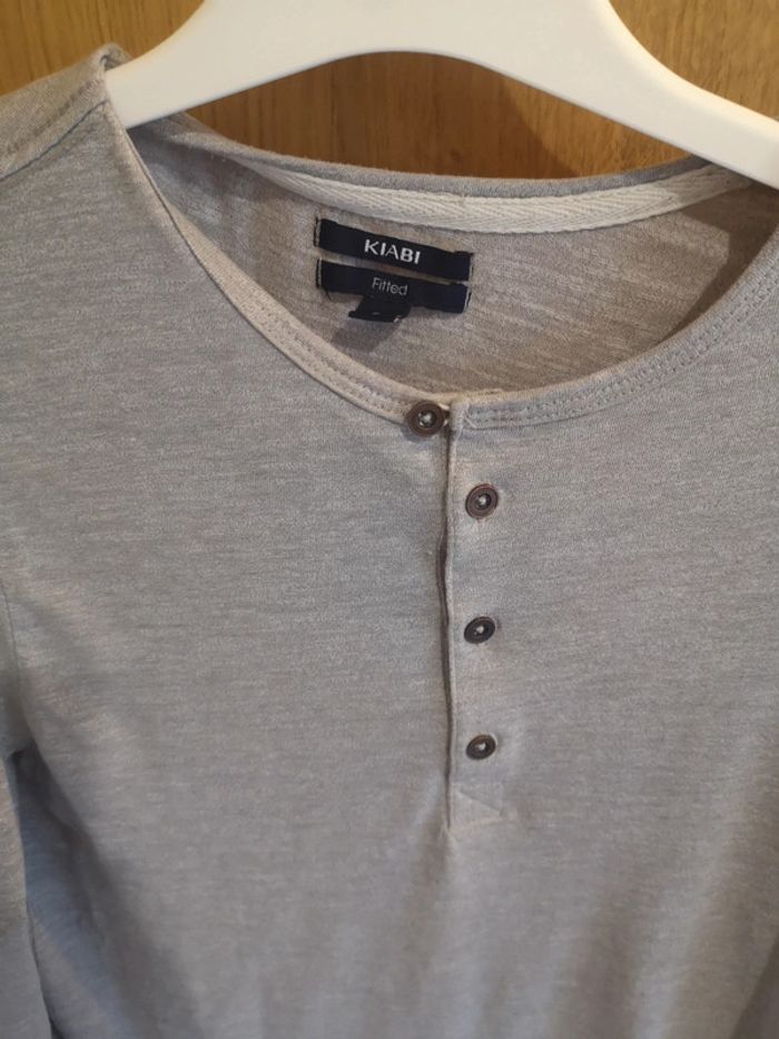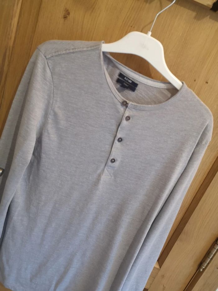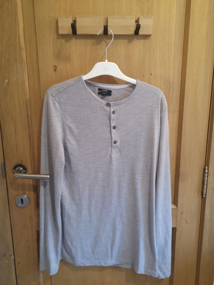 T-shirt à longues manches Kiabi en gris clair avec quatre boutons au devant. #alexam_hommes #kiabihommes #tshirthommes