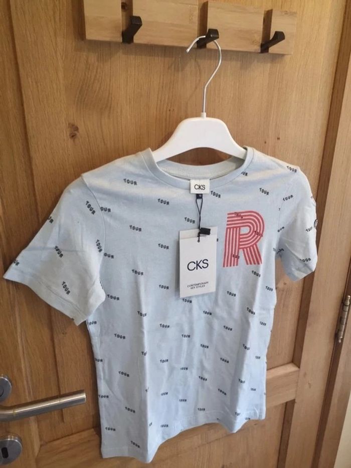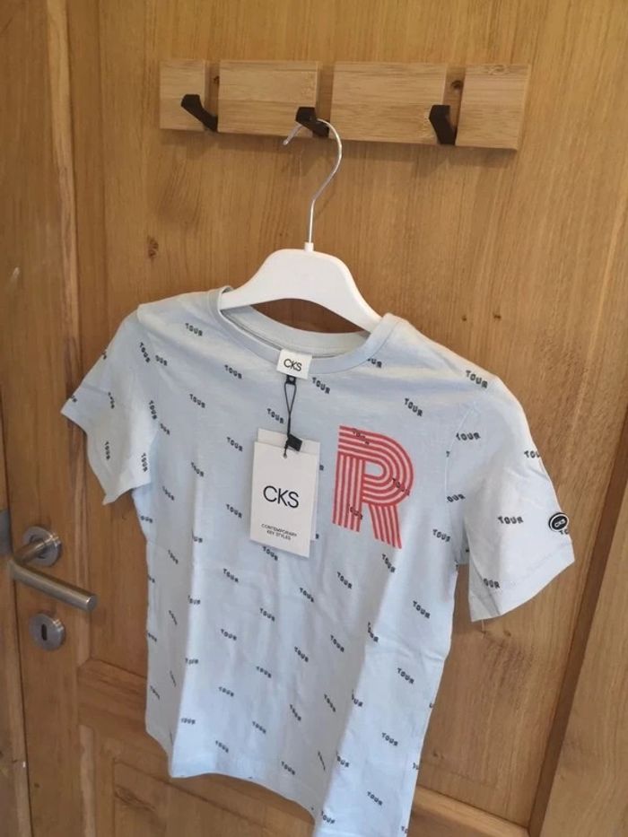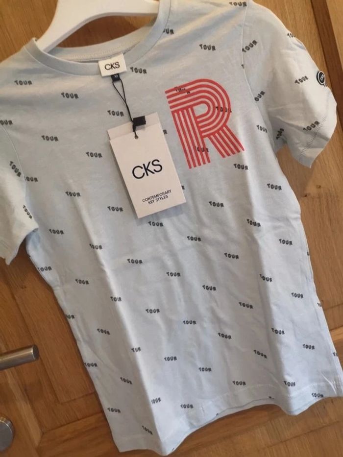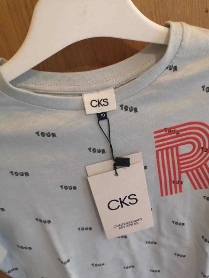 T-shirt CKS en bleu clair imprimé noir et rouge 10 ans - photo numéro 1