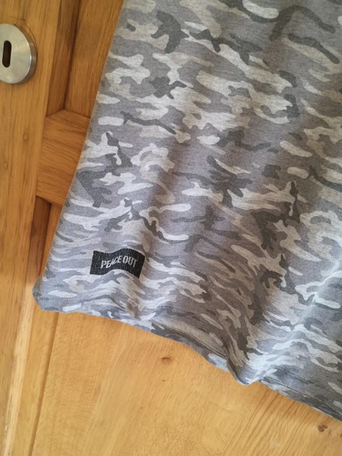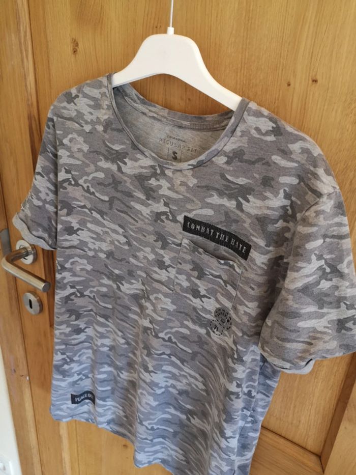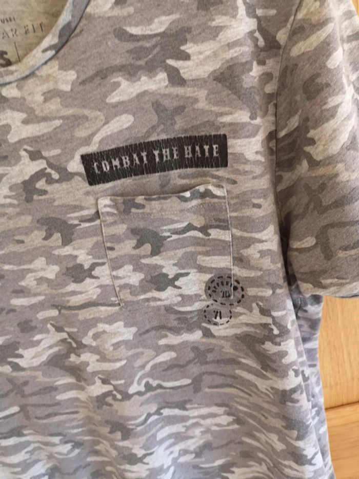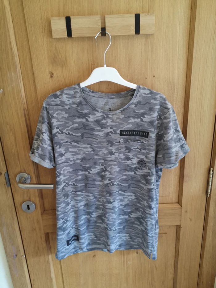 T-shirt à courtes manches C&A imprimé militaire dans les tons gris. Taille S. Beaucoup porté #alexam_hommes #cetahommes #tshirthommes